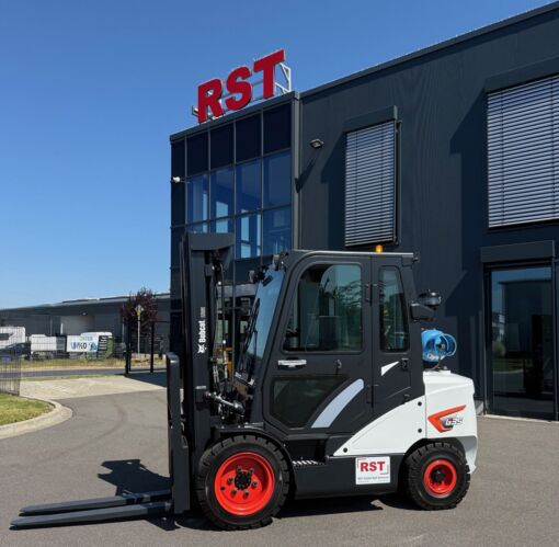 in der Schaufel eines Teleskopladers, die auf etwa sechs Meter Höhe ausgefahren war. Die Arbeiter mussten die Ziegel vom Dach nehmen und haben diese in die Schaufel gelegt. Auf der Straße konnten die Passanten unmittelbar neben der Maschine vorbeigehen – eine