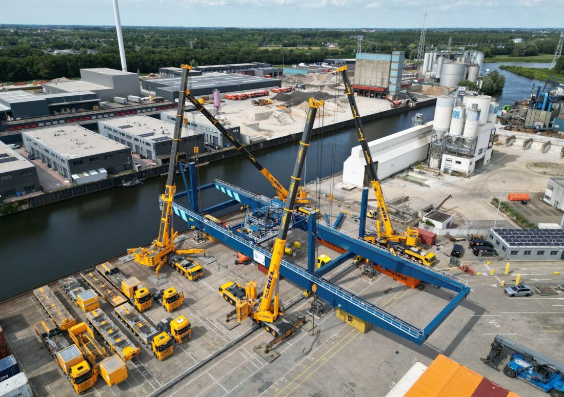 Nachdem der niederländische Krandienstleister M.J. Van Riel im Frühjahr den 240 Tonnen schweren Portalkran im Binnenhafen von Den Bosch für eine Renovierung demontiert hatte, sollte der komplett überholte Kran im Sommer wieder an seinen Standort zurückkehren. Dabei setzte Van Riel auf einen Quattro-Hub mit drei Tadano All-Terrain-Kranen. Zum Einsatz kamen zwei AC 9.700-1 und ein AC 8.500-1 sowie ein weiterer AT-Kran.