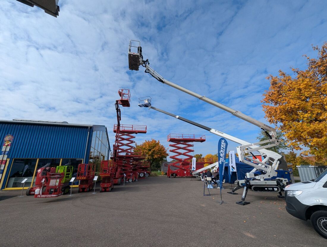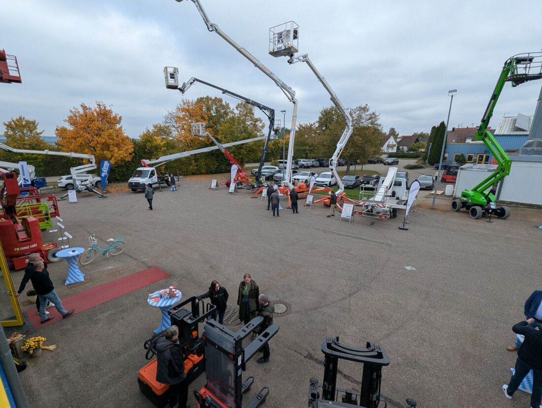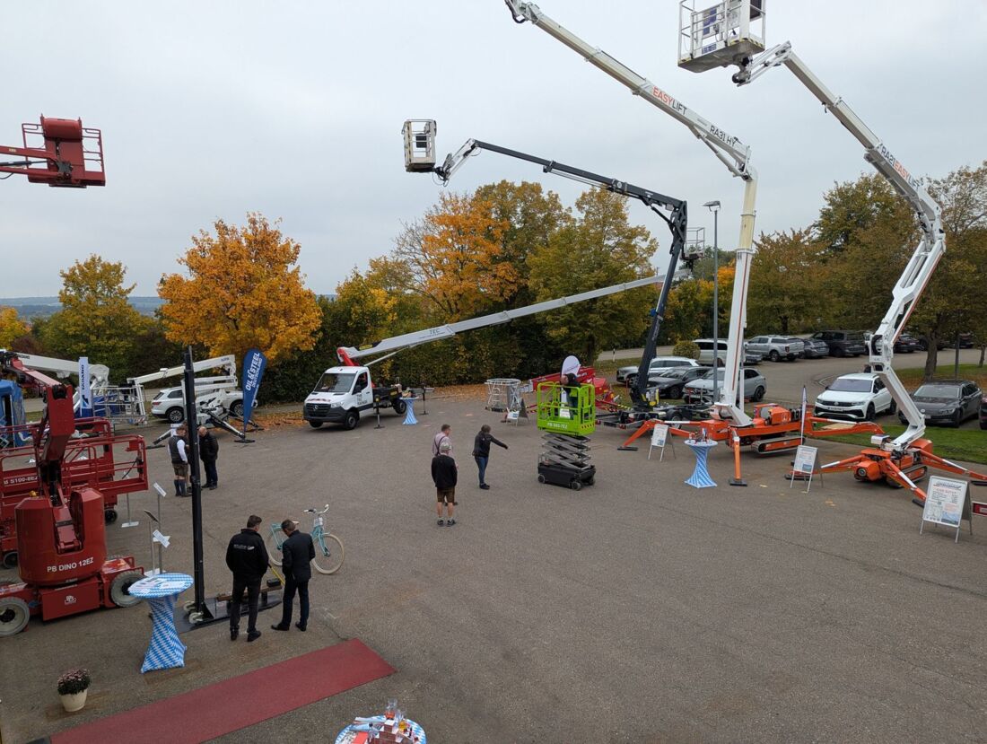Um die zwanzig Aussteller zeigten ihre Exponate in Form von Maschinen, primär Arbeitsbühnen, auch mal ein Teleskoplader, beziehungsweise informierten über ihre Technik und ihre Dienstleistungen wie beispielsweise AIM Accumulatoren, Partnerlift, Mira, GGW und die Targobank.