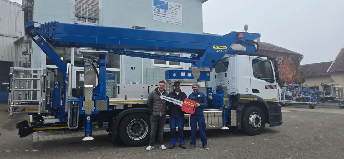 Zweithöchster Zuwachs: Die Firma Schmid aus Haimhausen bei München hat ihren Fuhrpark um eine LKW-Arbeitsbühne vom Typ P370 KS von Palfinger erweitert.
