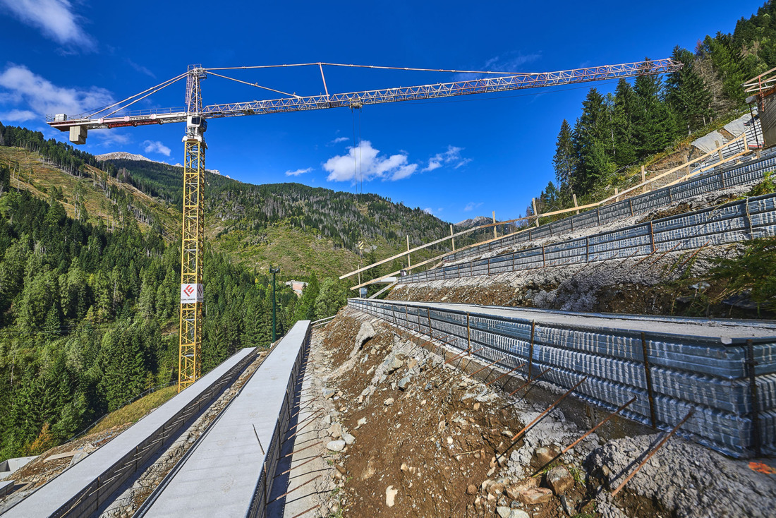 Mitbauen ist alles: Getreu dem olympischen Selbstverständnis – Dabei sein ist alles – ziehen Turmdrehkrane von Liebherr Biberach gerade zwei zentrale Wettkampfstätten für die bevorstehenden Olympischen Winterspiele 2026 in Italien hoch.