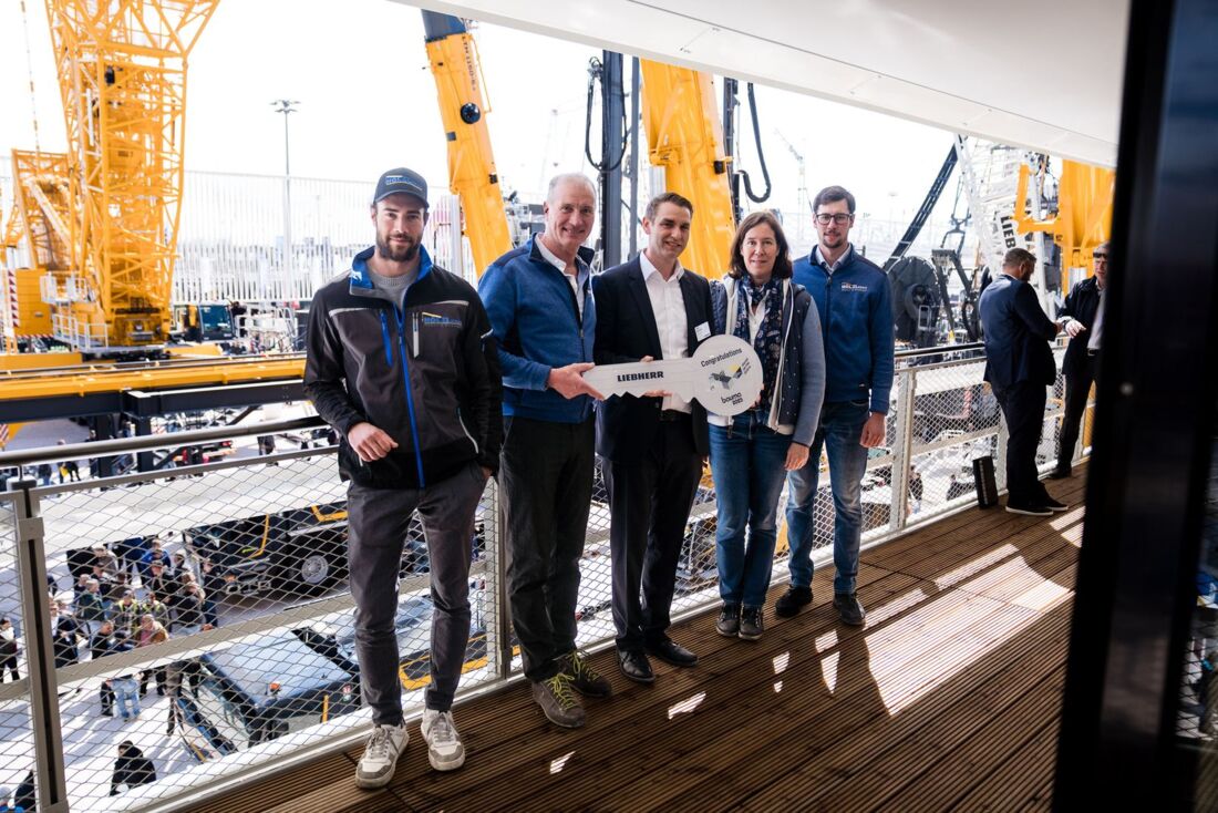 Auf der bauma 2025 bestellt: Benedikt und Walter Hölzl, Florian Maier von Liebherr, Josefa und Josef Hölzl (v.l.)