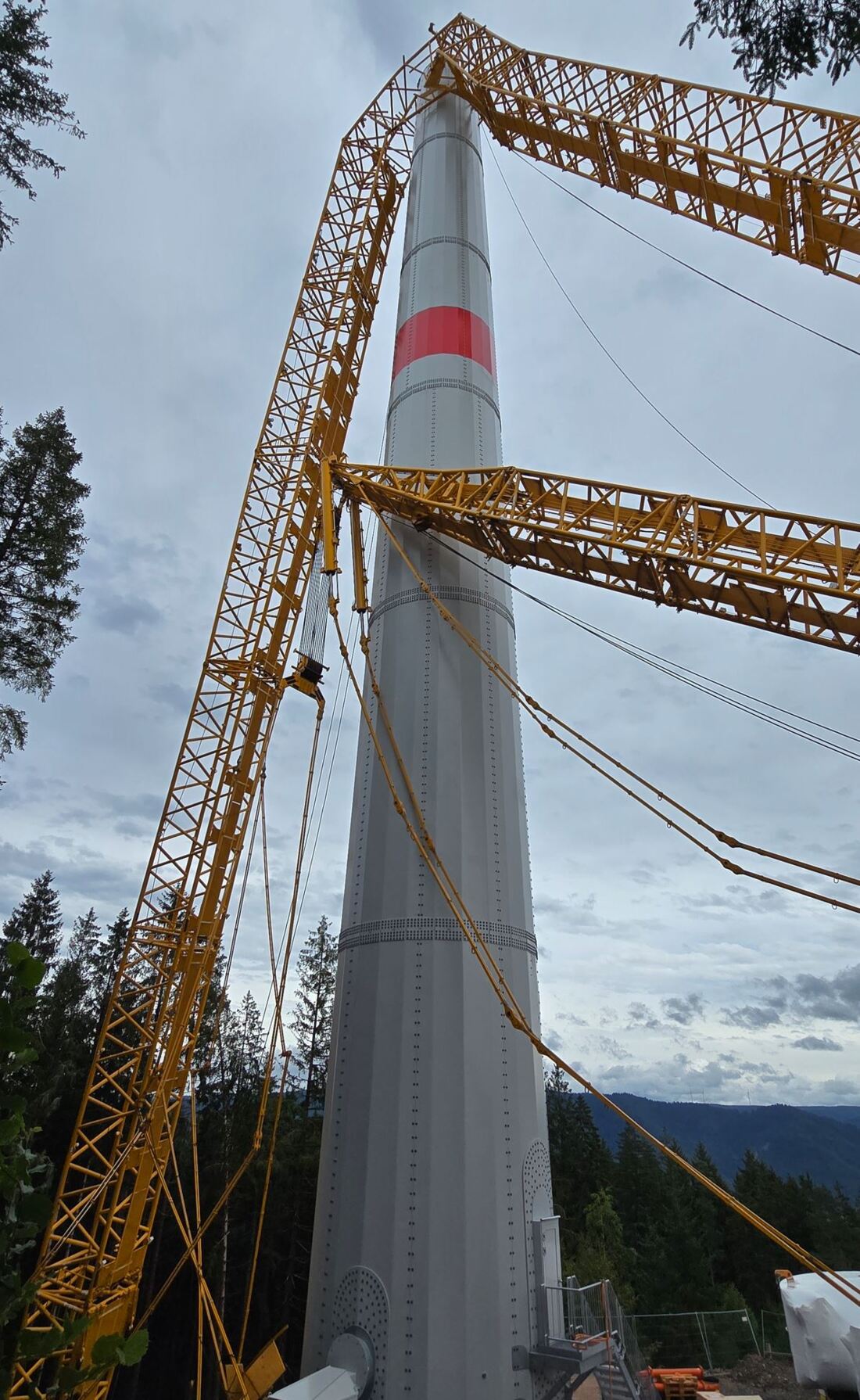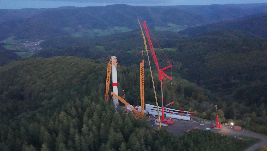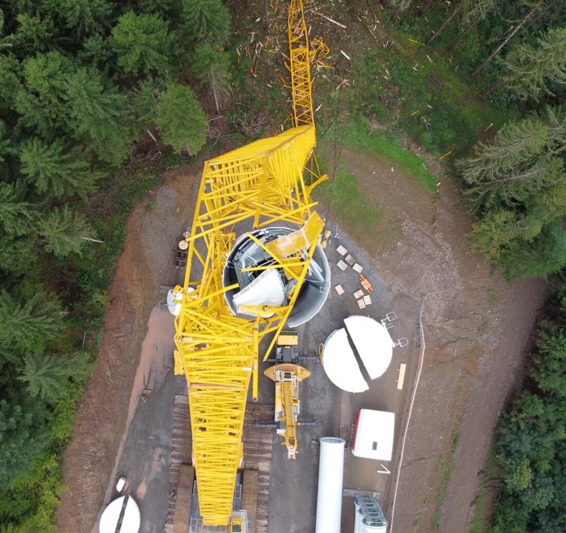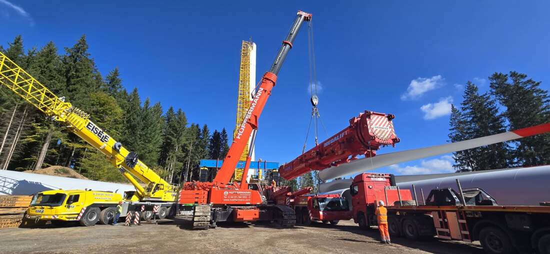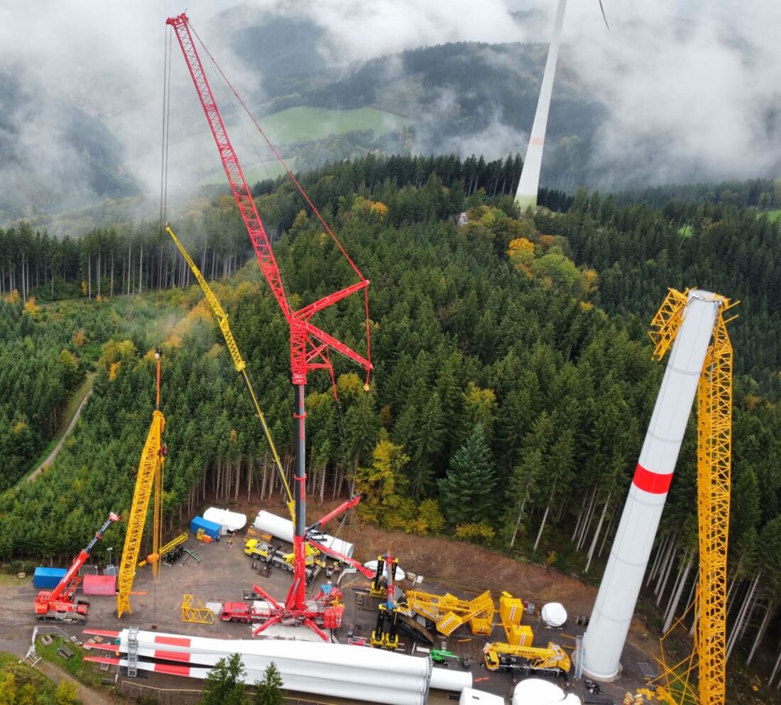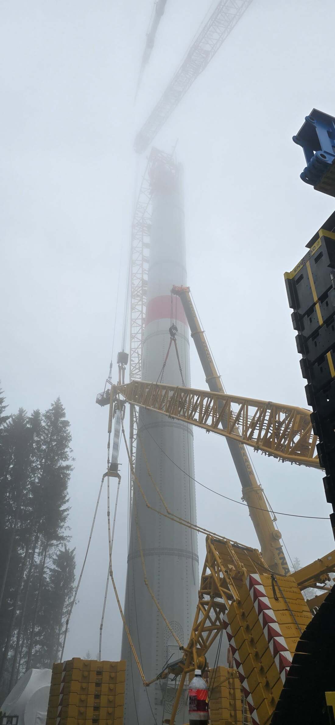 Baustelle des E-Werk Mittelbaden: Durch starke Windböen war der LR 1700 Ende August auf der Windkraft-Baustelle der Prechtaler Schanze zwischen Gutach und Mühlenbach in der Ortenau nach hinten umgestürzt. Dabei schlug der Gittermastausleger auf den teilweise errichteten Turm einer im Bau befindlichen Windkraftanlage (WKA) auf und knickte in rund 80 Metern Höhe ab. Der Turm selbst misst 76 Meter. Der LR 1700 war zum Unfallzeitpunkt mit einer Systemlänge von 162 Metern aufgebaut.