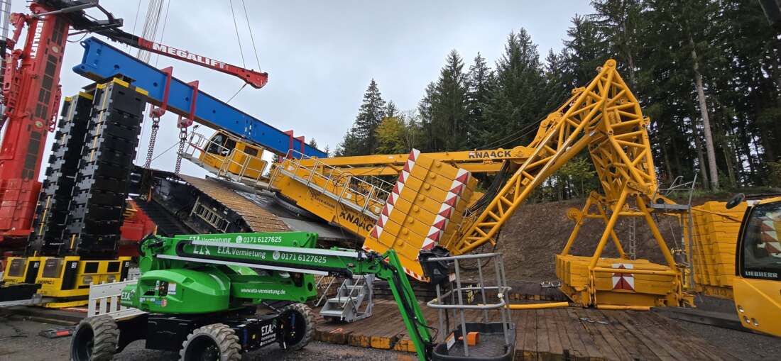 Die Firma Eisele wurde für diesen außergewöhnlich komplexen Kranunfall mit der Planung, Durchführung und Gesamtleitung der Bergungsarbeiten der havarierten Liebherr-Raupe LR 1700 beauftragt. Die Situation vor Ort stellte höchste technische und organisatorische Anforderungen, so das Unternehmen.