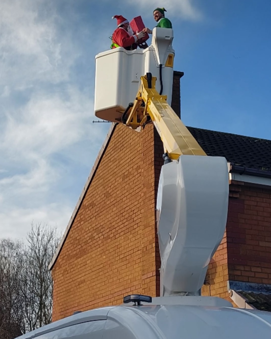 Der britische Hersteller von Fahrzeugarbeitsbühnen Aldercote hat eine Weihnachtskampagne gestartet, um seine Transporter-Arbeitsbühne VZ140 Neo mit 14 Meter Arbeitshöhe zu bewerben. Im Mittelpunkt steht, für die Jahreszeit nicht unüberraschend, der Weihnachtsmann, der die Bühne für Geschenkauslieferungen nutzt.