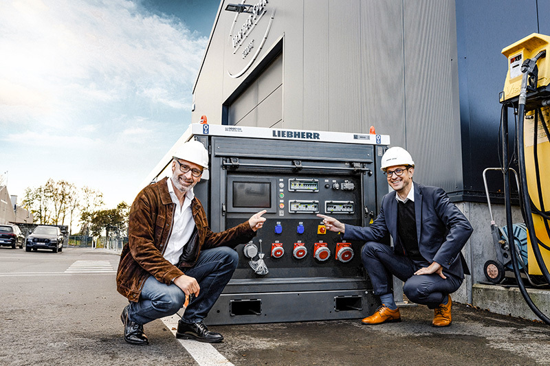 Energiewende auf Baustellen: Im belgischen Ternat, nahe Brüssel, erweitert der Baumaschinenhändler Van der Spek sein Portfolio um neun mobile Energiespeicher des Typs LPO 100 aus dem Hause Liebherr.