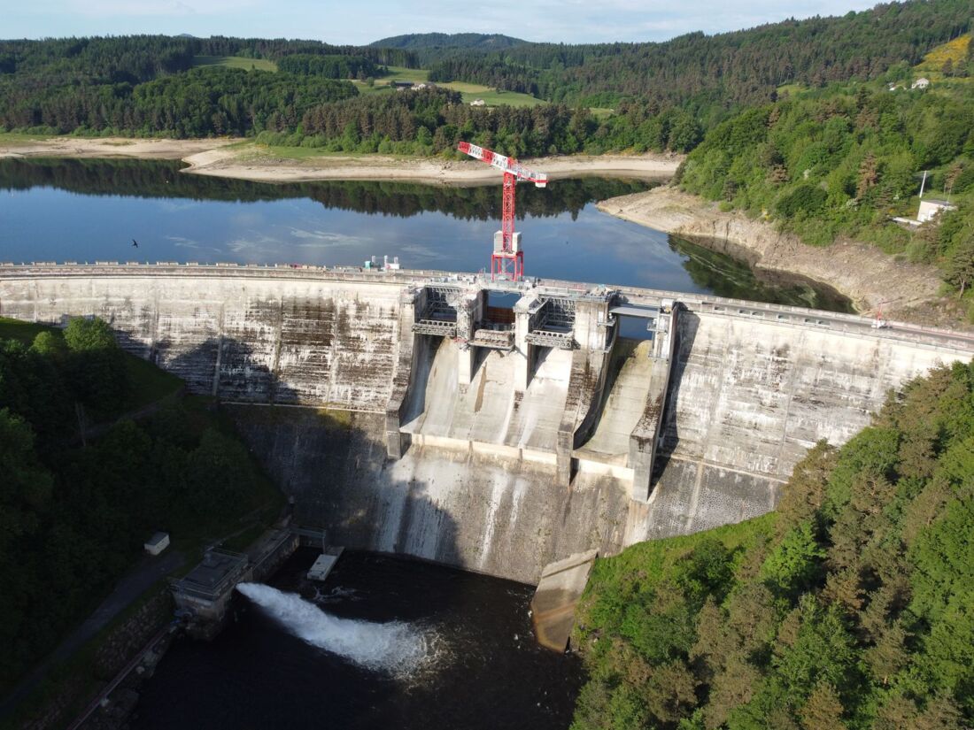 Die Bauarbeiten am Staudamm umfassen den vollständigen Austausch von drei Hochwasserklappen aus den 1950er-Jahren sowie die Modernisierung einer vierten Klappe aus den 1990er-Jahren. Alle vier sind nach jahrzehntelangem Betrieb stark verschlissen. Der WOLFF 7534.16 Clear mit einer Hakenhöhe von 20,4 Metern, einer Auslegerlänge von 40 Metern und einer Tragfähigkeit von 16 Tonnen übernimmt den Einbau von Provisorien und das Aus- und Einheben der alten wie auch der neuen Klappen.