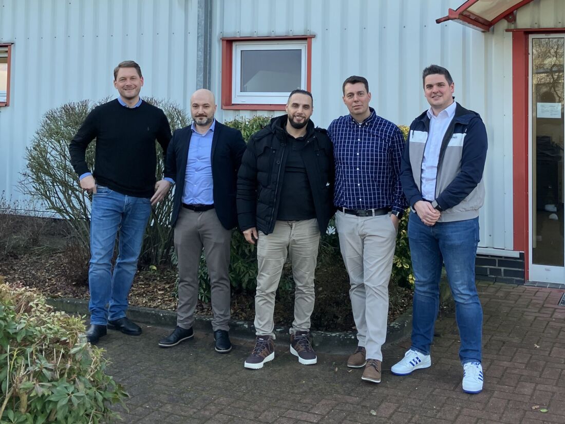 Christoph Böttcher, Geschäftsführer TREX.PARTS; Mehmet Ay, Head of Aftermarket Parts Sales, und Raschad Muzayan, Aftermarket Sales Representative Customer, beide JLG; Christopher Klose, Direktor Produktmanagement & Procurement, sowie Produktmanager OE Jannik Brandt, beide TREX.PARTS (v.l.)