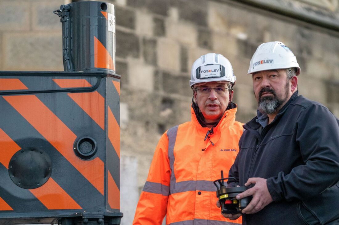 Kranfahrer David positioniert seinen neuen Kran. Mit dabei: Joël Karotsch, Leiter der Niederlassung von Foselev in Bordeaux.