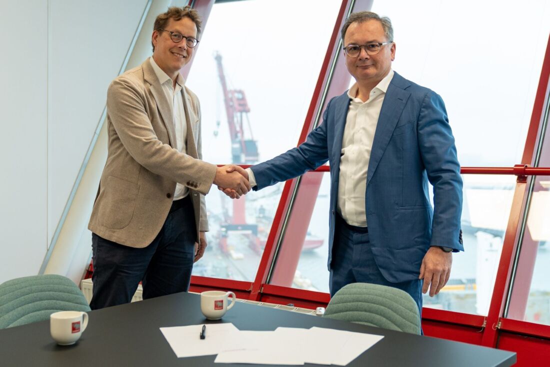 Mammoet-CEO Joost Goderie (l.) und ULC-Energy-CEO Dirk Rabelink Dirk Rabelink, CEO von ULC-Energy, sagt: „Wir sind überzeugt, dass die Kernenergie eine wichtige Rolle in zukünftigen CO₂-armen Energiesystemen spielen wird, von denen Haushalte, Unternehmen und die Umwelt profitieren werden. Diese neue Kooperation zwischen Mammoet und ULC-Energy zeigt, dass sich für niederländische Zulieferunternehmen bedeutende Möglichkeiten bieten, die Entwicklung neuer Kernkraftwerke zu unterstützen.“