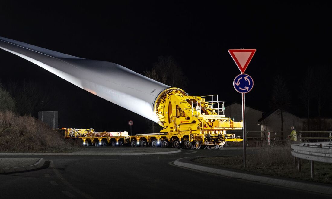 Zwei der Windkomponenten-Transportsysteme werden vom Trierer Schwerlastlogistiker und Kranvermieter Steil Kranarbeiten betrieben, ein weiteres vom Windanlagenbauer Enercon selbst. Die gleichzeitige Koordination der drei Teams sowie die Abstimmung mit weiteren Transporten von Turmsegmenten und Anlagenkomponenten erforderten eine präzise Planung und enge Zusammenarbeit aller Beteiligten, berichtet der Pfedelbacher Spezialist.