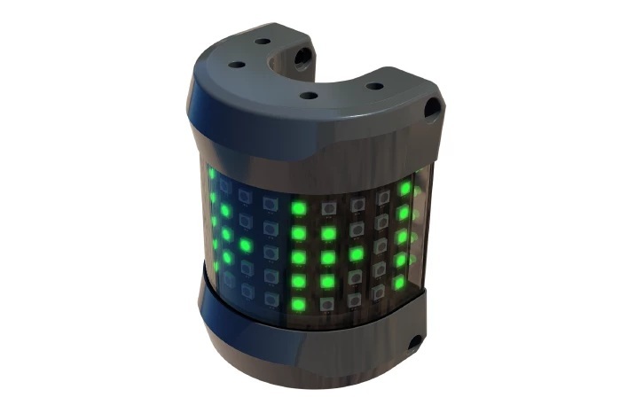 Mit dem in flacher und runder Form erhältlichen CAN-Light bringt das Unternehmen zudem eine flexibel montierbare Signalleuchte mit nach Maastricht. Sie besteht aus mehr als 90 einzeln ansteuerbaren RGB-LEDs, mit denen sich nicht nur Farben, sondern auch Texte und Symbole darstellen lassen.