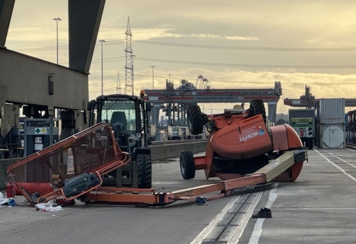 Two men lost their lives last Saturday when a container crane pushed over their boom lift at a container yard in Cologne, Germany