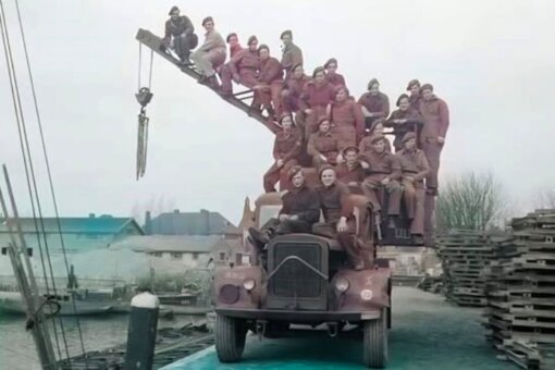 Received from a reader soldiers using their truck mounted crane as a prop for a group photograph