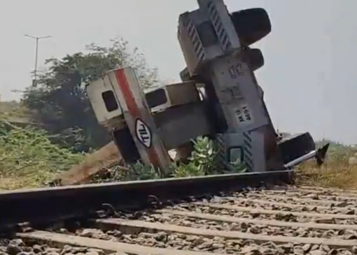 The overturned crane