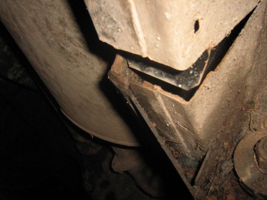 The chassis failure with the rear radius arm fixing to the bottom right.
