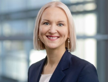 Genie product manager Marie Engstrom at the launch of the new High Float and Trax booms
