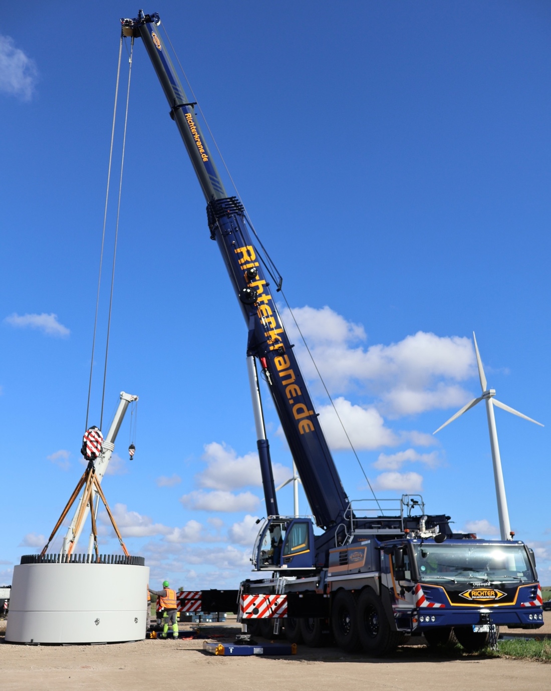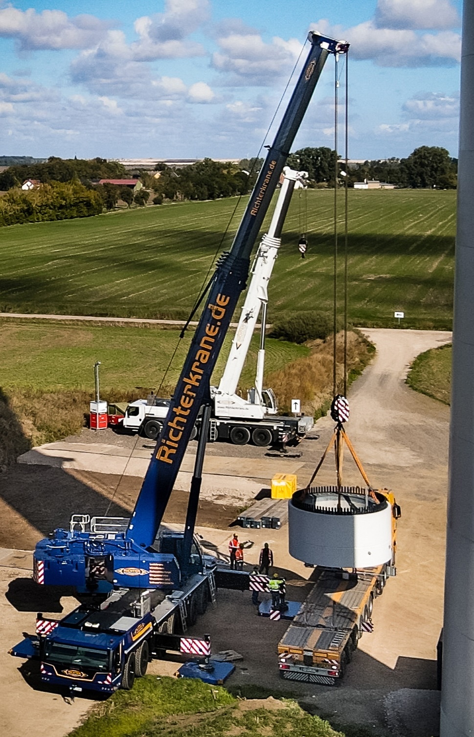 Richter Kran will primarily use the crane for tower crane assembly, infrastructure projects such as energy supply and the construction of electricity pylons and wind power work. The crane's first job will be unloading components for wind turbines at the Baalberge wind farm for two weeks, before heading to Leipzig to dismantle a tower crane in a rear courtyard.