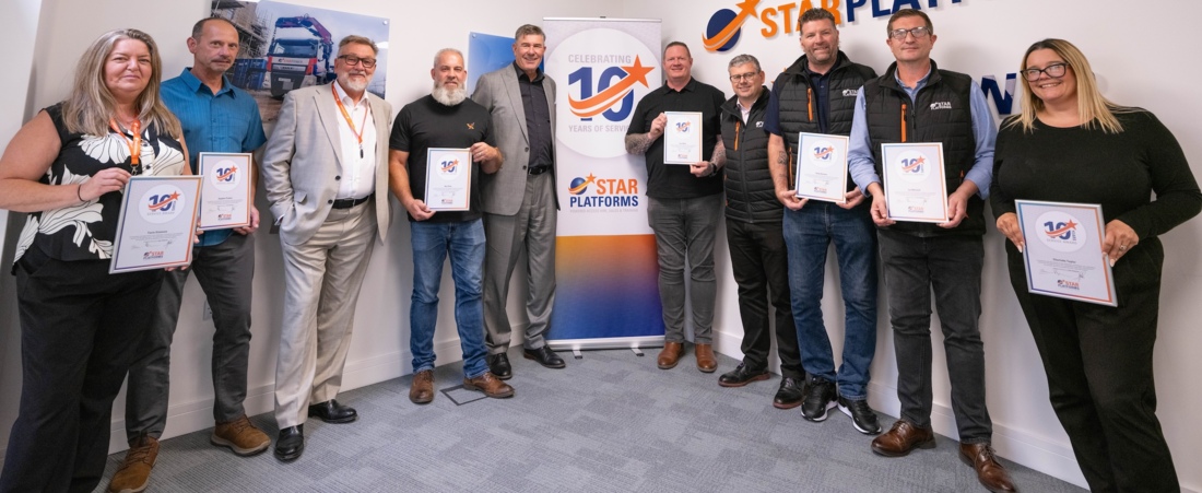 10 employees of UK rental company Star Platforms have acheived 10 years of service.