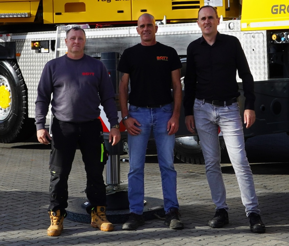 (L-R) Wolfgang Hansen and Daniel Matheis of Bott with Lukas Brämer of KranAgentur Werner