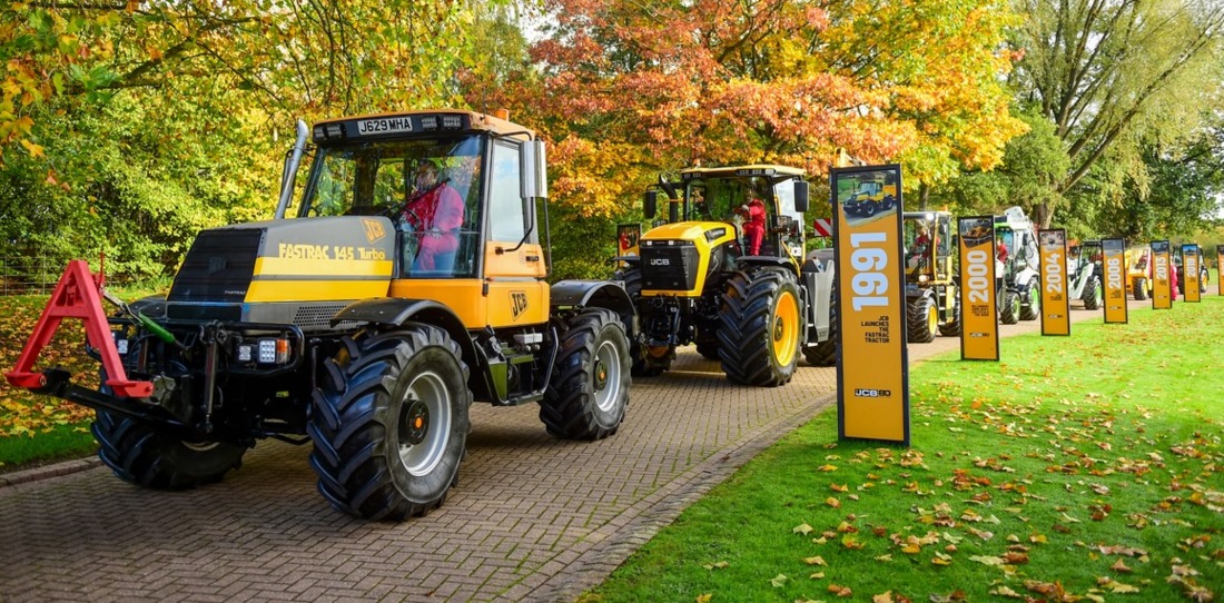 At the company's world headquarters in Rocester, 3,500 employees lined the pathways to celebrate. A cavalcade procession featured a number of milestone machines, including the first 520 telehandler from 1977, the 1991 Fastrac tractor, the 19C-1E electric mini excavator as well as the hydrogen powered backhoe loader and telehandler.