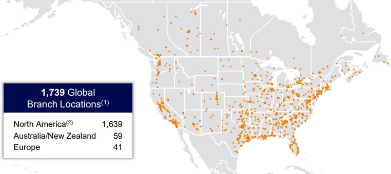 United Rentals' branch network as of the end of September