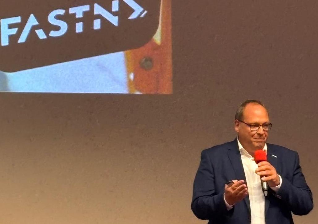 Thomas Wegeler of Haulotte Hubarbeitsbühnen speaks at the recent annual Stapler Plus meeting