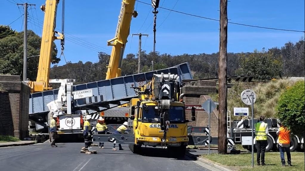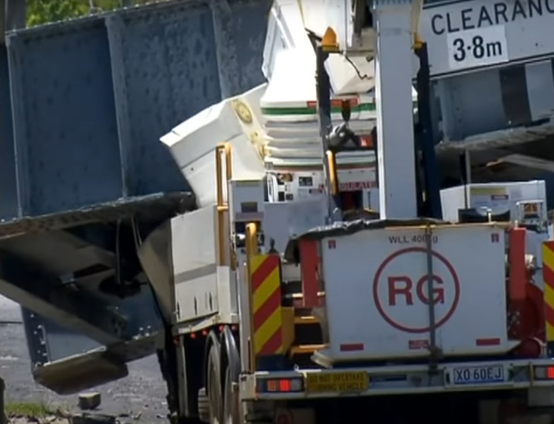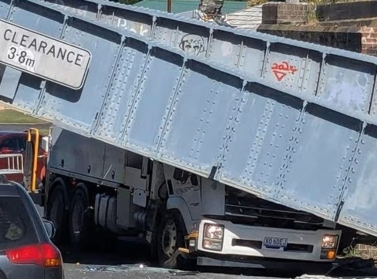 Both men were employees of Sydney Trains which runs the region’s suburban train network. The platform is one of the larger models made by Redmond Gary. If it is the model that we have been told it is, the overall height is typically 4.1 metres. But that does depend on the chassis. Other bridges further down the road have well over four metres of clearance.