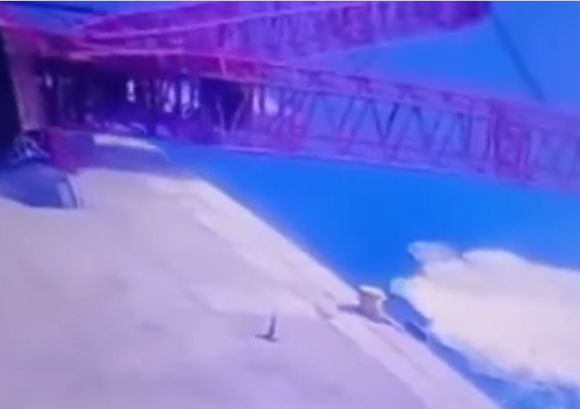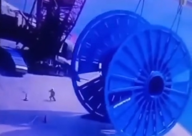 A 750 tonne Manitowoc M18000 Max-ER crawler crane overturned sideways into the sea while lifting a large cable reel at an Aliseo / Petrobas offshore logistics base in Porto do Açu, Brazil.