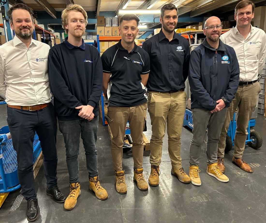 The new UK team - (L-R) Karel Ghistelinck of Platform Parts with Robbie Hawxby, Shay De, Tom Cribb and Ben Jones of CPS and Mathieu Naessens of Platform Parts