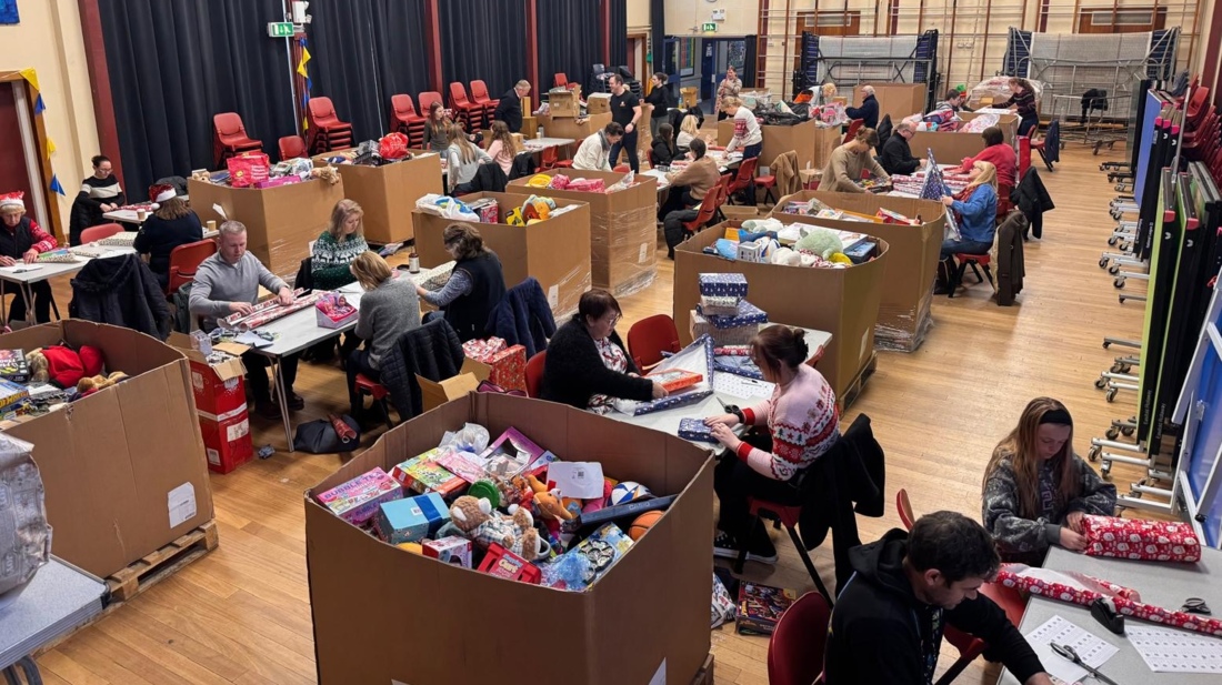 This year, 250 volunteers wrapped gifts at events in Bath and Ipswich. Additional gifts are at the alliance's Ipswich depot awaiting transport.