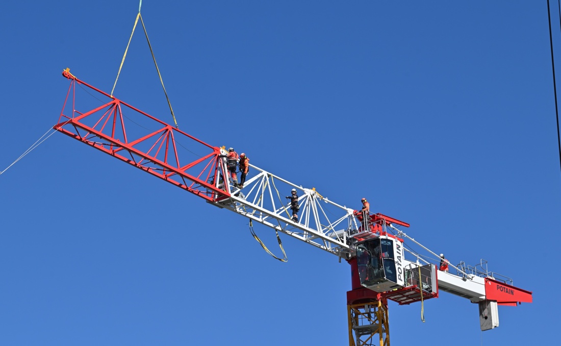 Two 10 tonne Potain MDT 219 J10 flat top tower cranes have been erected in the Chamonix valley ski area, France, at an elevation of 3,000m using a helicopter.