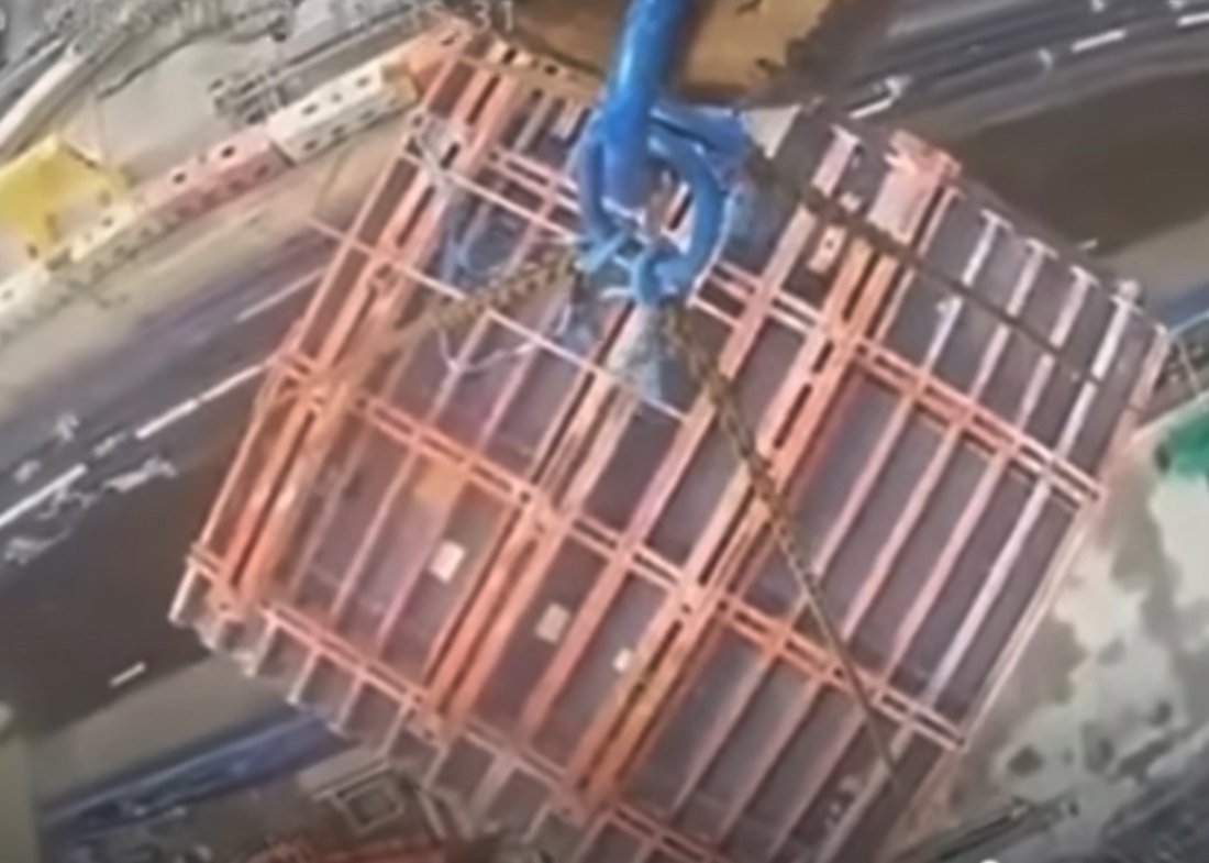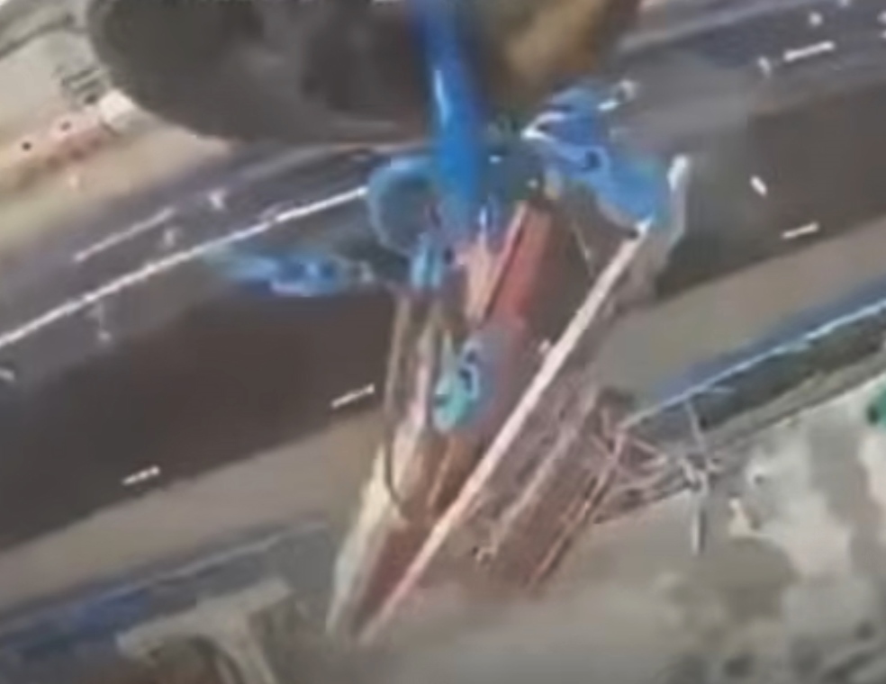 A number of you have sent us hook camera video footage over the past week or so that showed a collapsing load. We have now managed to track down when and where the incident happened. It occurred a few weeks ago in the UK at the Hinkley Point C nuclear power station site in Somerset, South West England.