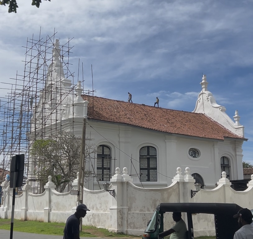 Spotted by a reader in Sri Lanka, four individuals erecting scaffolding and transporting materials across a church roof, around 20 metres or more above the ground, negotiating the apex of the tiled roof as if it were a tightrope. Among them - what appeared to be a child - was recorded carrying a bucket along the precarious route. Others were doing much the same on the horizontal scaffold poles.