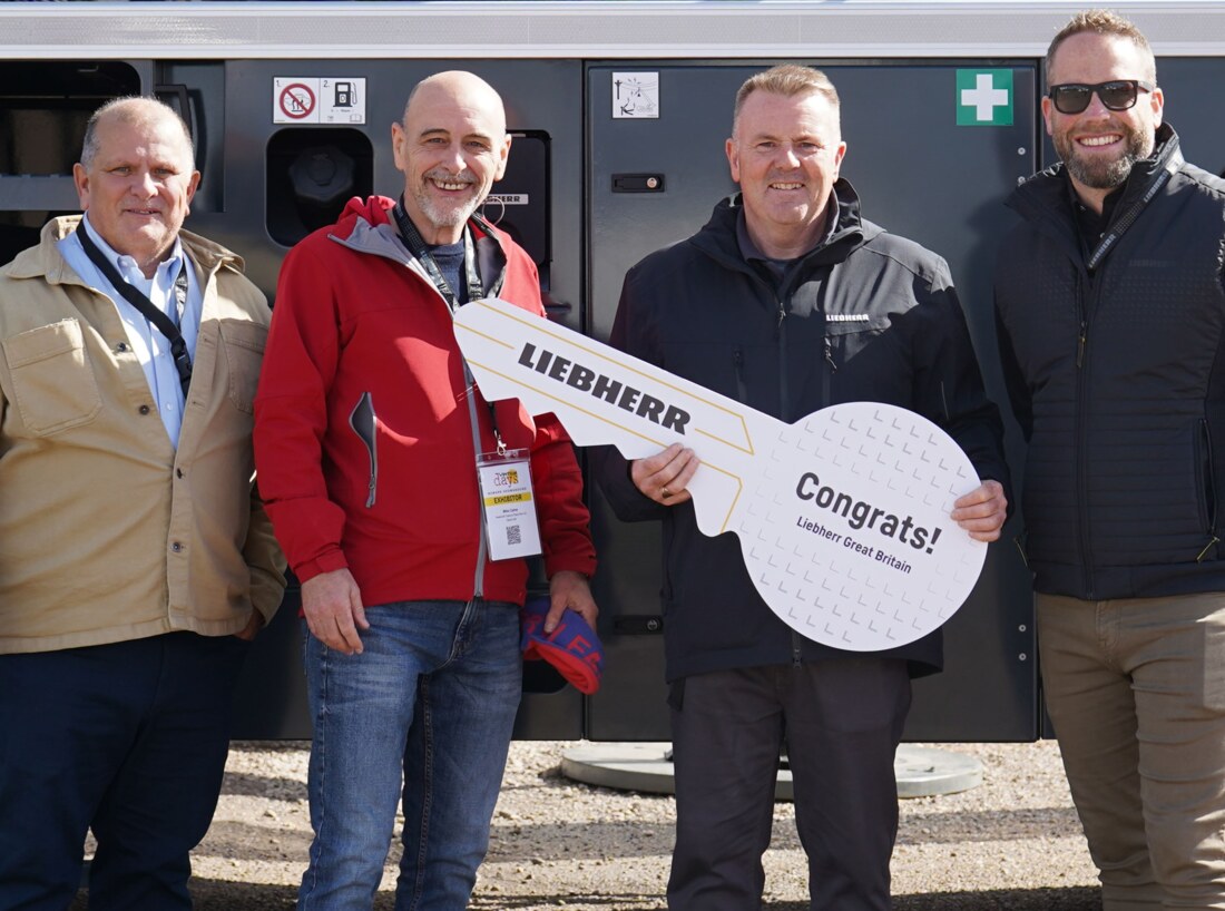 (L-R) Paul Mather, Mike Caine and Kieron Burns of Roadcraft with Lyle Sibbald of Liebherr