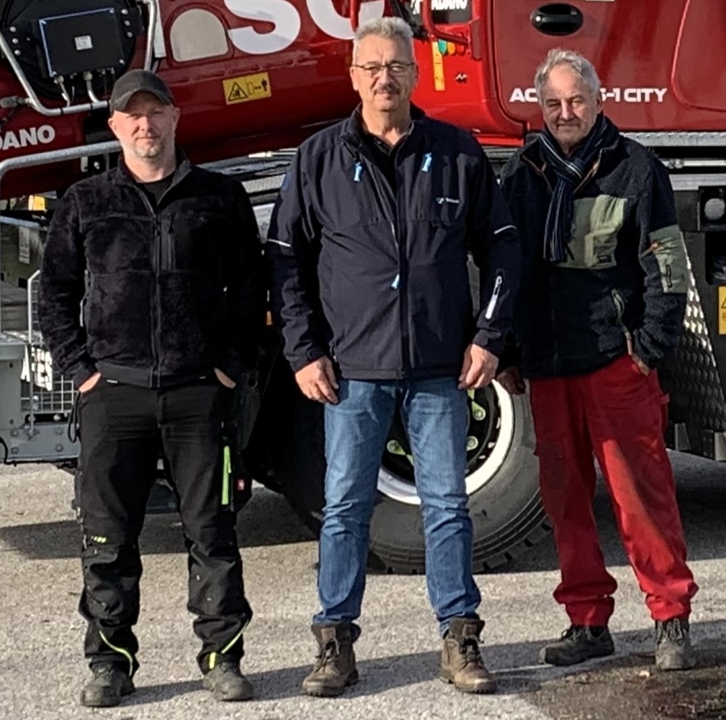 (L-R) Rene Brömmelhus of Schares with Helge Prüfer of Tadano and Andreas Erzening of Schares