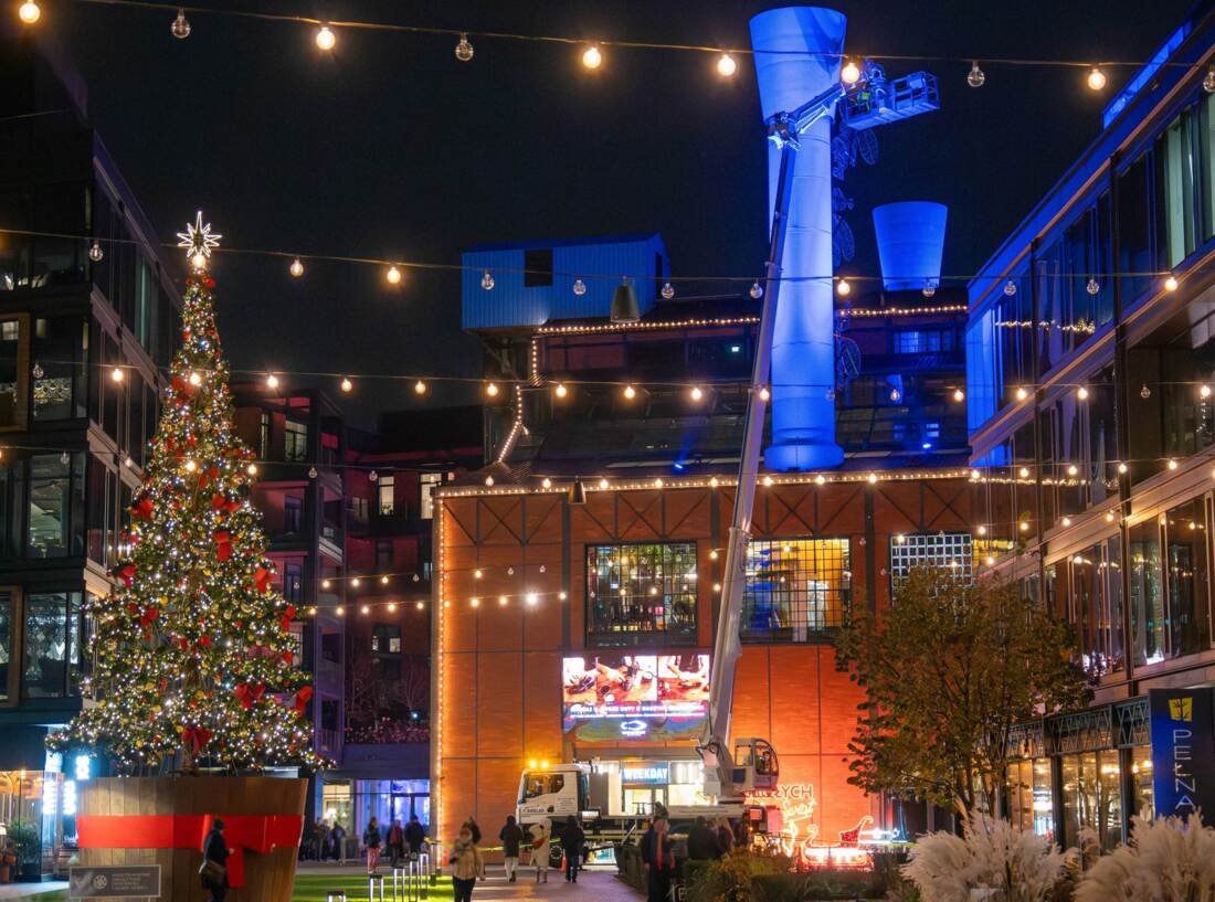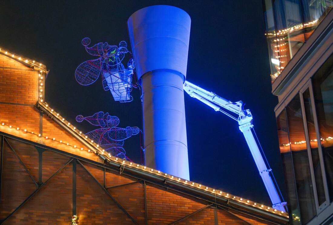 The MJ 375 was chosen for this job due to its compact dimensions and ability to work in confined spaces, and its ability to function as a truck mounted crane with a lift capacity of up to 700kg, ideal for lifting a Christmas tree into place.