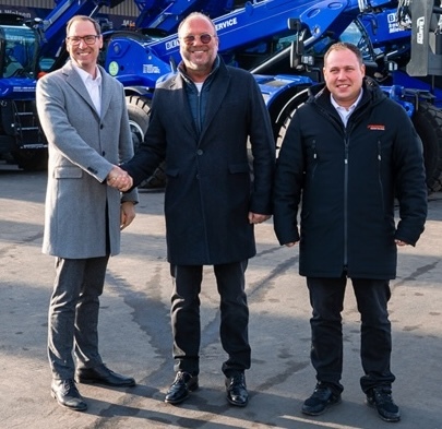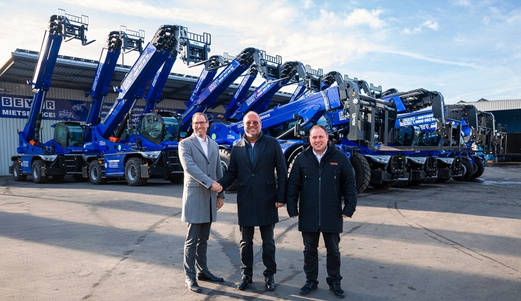(L-R) Peter Wildemann of Manitou with Dieter Beyer and Simon Rath of Manitou The order was placed at Bauma earlier this year, with most of the units handed over at Beyer's facility in Etzbach last week, the last of the units will arrive early next year.