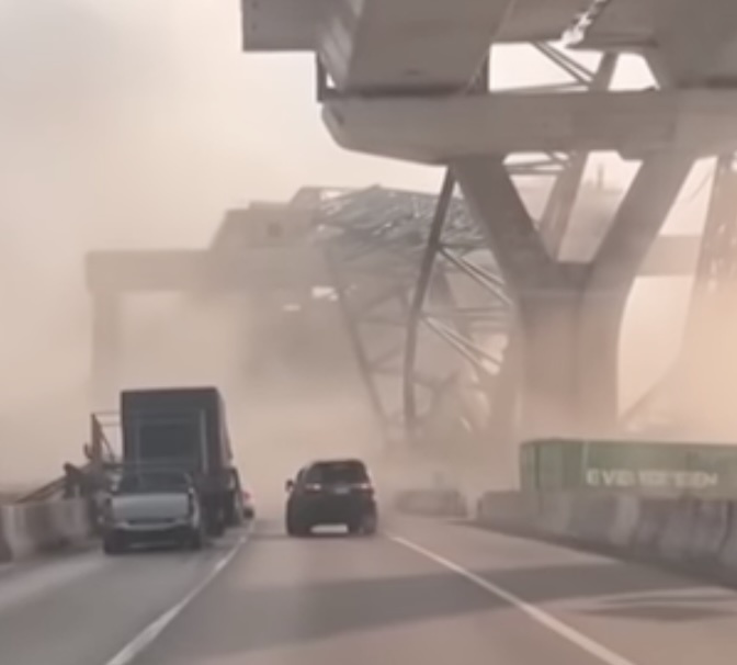 The collapse from dash cam footage