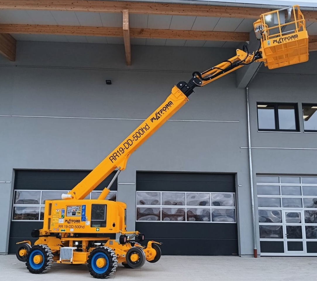 The RR19/500 – launched in 2022 - features a three section boom with internal hoses and cables, topped by an articulating jib, a 19 metre working height with 500kg platform capacity and up to 12.6 metres of outreach.