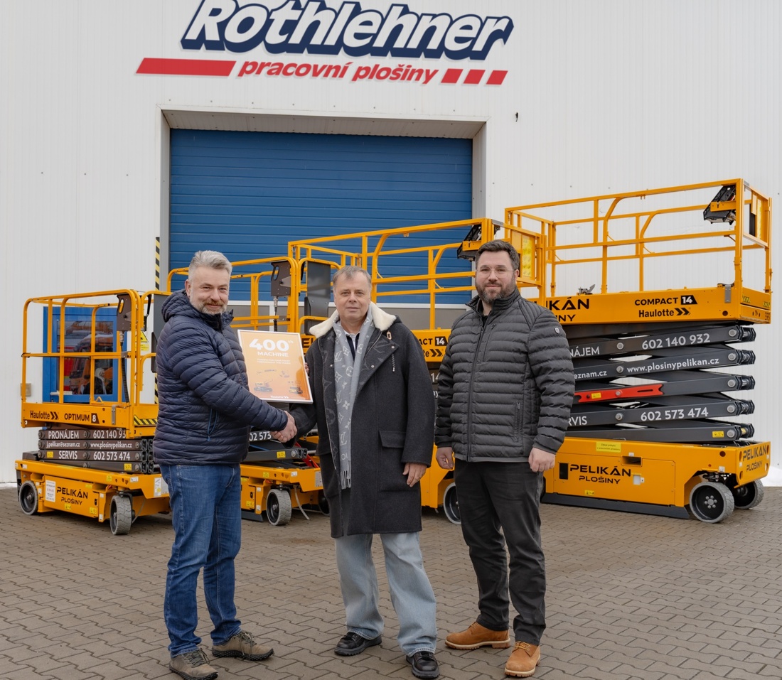 Czech rental company Plošiny Pelikán has taken delivery of its 400th Haulotte platform. The latest order includes a number of 20ft Optimum 8 and 40ft Compact 14 slab electric scissor lifts, but, as far as we are aware, the company has not nominated one particular unit as its 400th. The new machines were supplied through Haulotte’s local distributor Rothlehner.