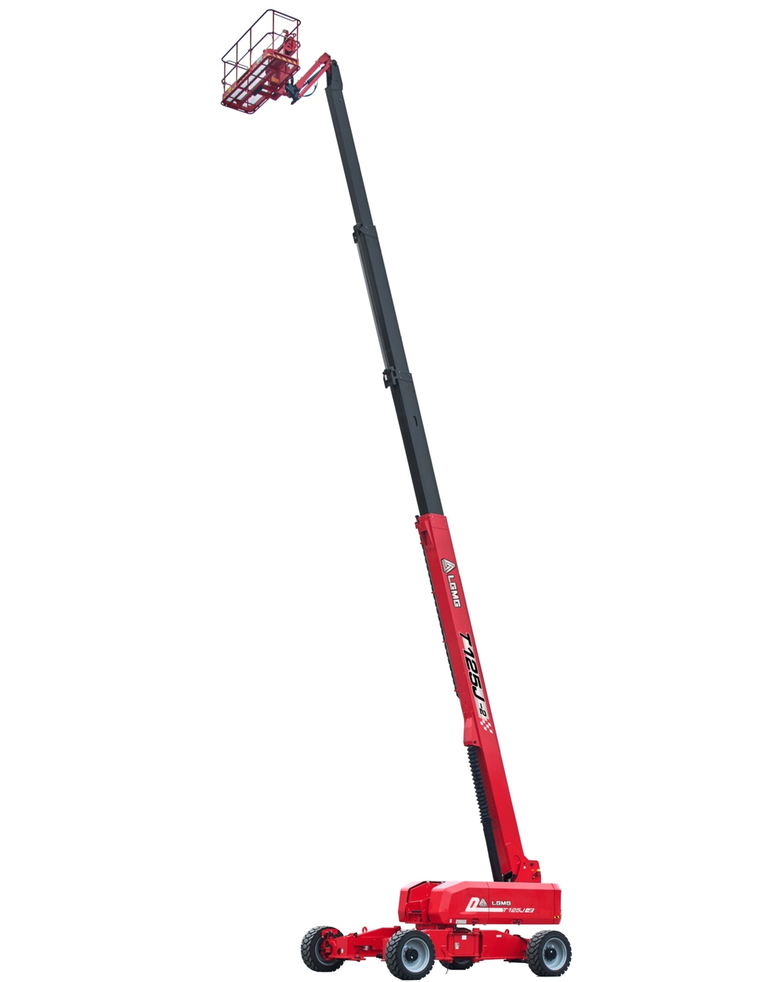 The diesel powered four wheel drive T125J-2 / T38J-2 features a four section telescopic boom topped by an articulating jib for a maximum working height of 40.2 metres and up to 22.3 metres outreach with 300kg in the platform. The maximum platform capacity of 450kg is available at up to 21 metres of outreach.