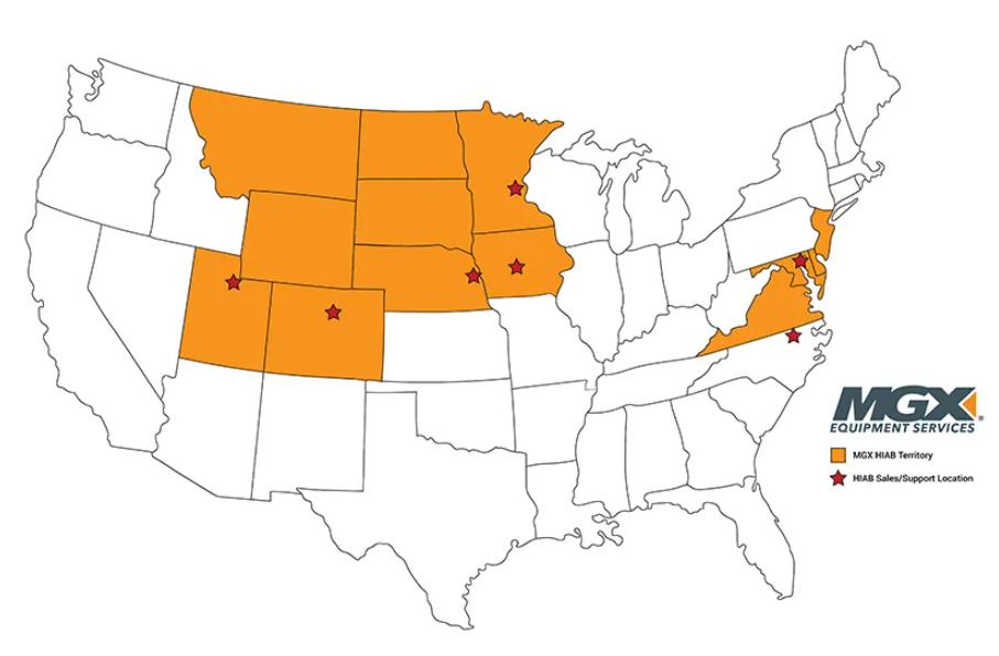 Hiab has appointed Manitowoc owned MGX Equipment Services as a sales, service and replacement parts distributor for its loader cranes across 13 states - Colorado, Delaware, Iowa, Maryland, Minnesota, Montana, Nebraska, New Jersey, North Dakota, South Dakota, Virginia, Wyoming, Utah.