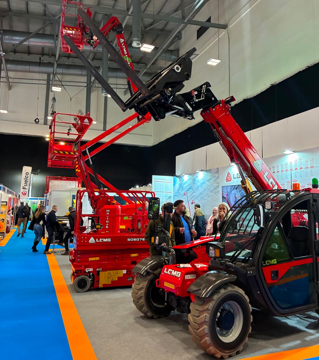 • The LGMG stand was busy with the launch of the all new H1840 electric telehandler plus a good selection of platforms, including scissors and mast lift, and the new A14JE-2 lithium ion battery powered boom lift.