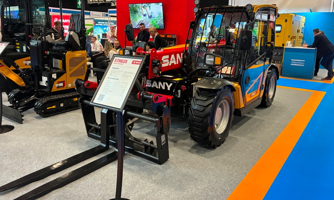 • Sany showed a new 6m/2,500kg compact telehandler – the STH1625, with a choice of all electric or diesel power.