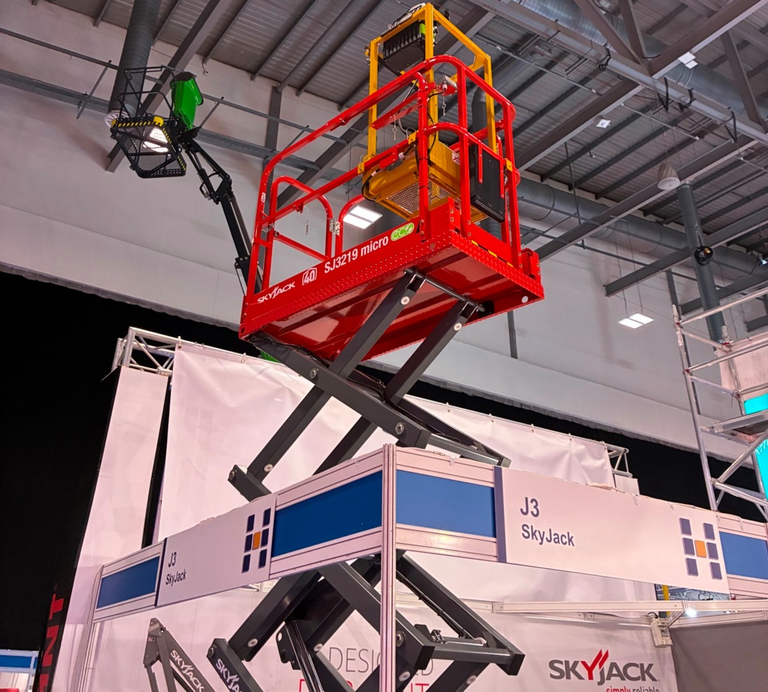 •JLG also had its own stand with two low level Nano 30CS and Nano 35, along with the 550 platform for ceiling tile access. It also showed a number of scissor lift attachments including the board and pipe carriers and tool tethering attachments.