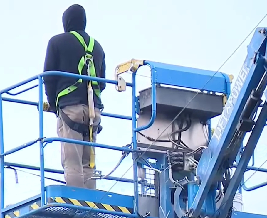 At 9 a.m. the Seattle Fire Department’s Fire Alarm Center received 911 calls reporting an aerial lift platform made contact with power lines, resulting in a fire in the 1200 block of Queen Anne Ave. N. When firefighters arrived on scene, they reported a fire involving the base of the aerial lift vehicle that extended to a natural gas line directly underground. The Energy Response team was dispatched for their expertise in working around high-voltage power lines. Rescue 1 was requested to assist in rescuing the lift operator, and the HazMat team responded with their additional air monitoring equipment. 59 firefighters and support staff responded to the incident.