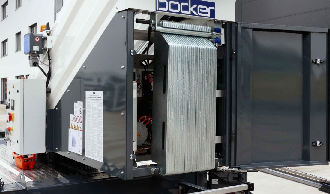 The company said: “As a Böcker trailer crane of the NeXt generation, the battery powered crane combines uncompromising performance with sustainable drive technology and sets standards for demanding construction sites. With its hydraulically extendible jib, the electric 1.5 t winch, a revised chassis and optional additional ballasting, the new crane always utilises its performance potential - without compromising on range, payload or working speed.”