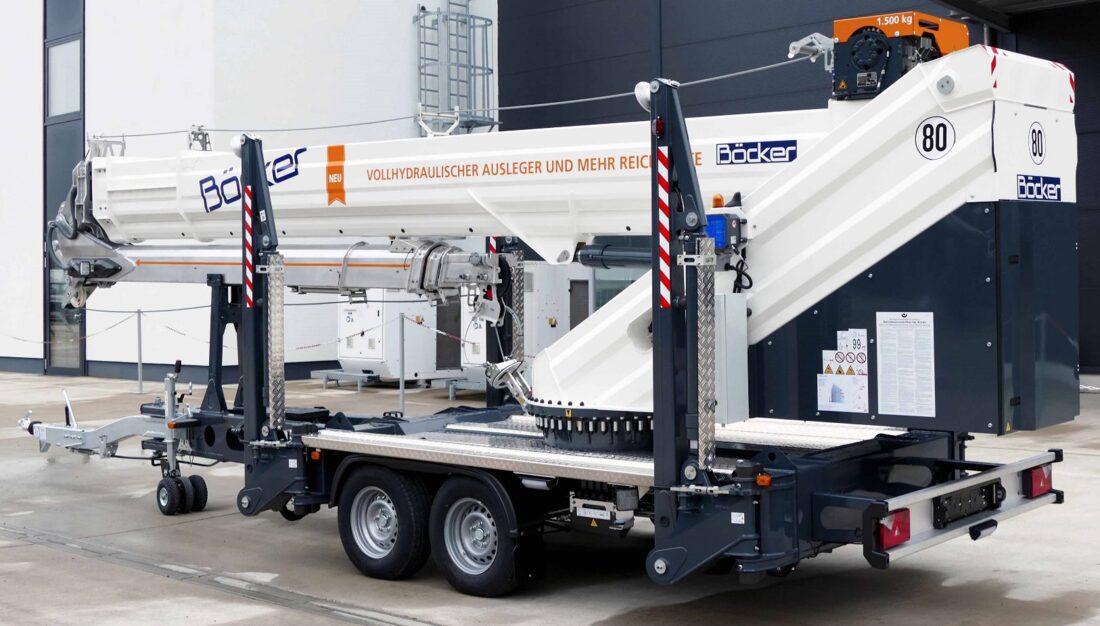 German crane and hoist manufacturer Böcker has launched a new 2.5 tonne electric powered trailer crane, the AHK 36e X.