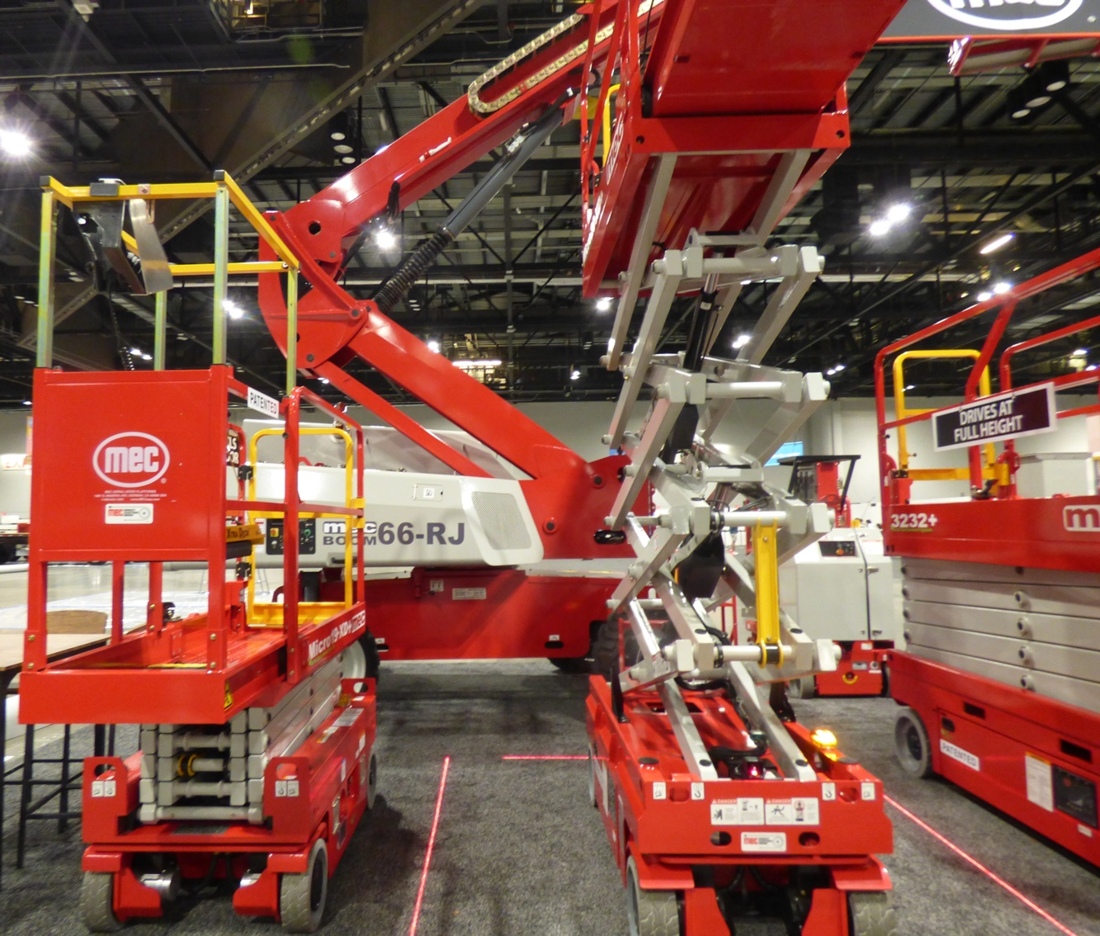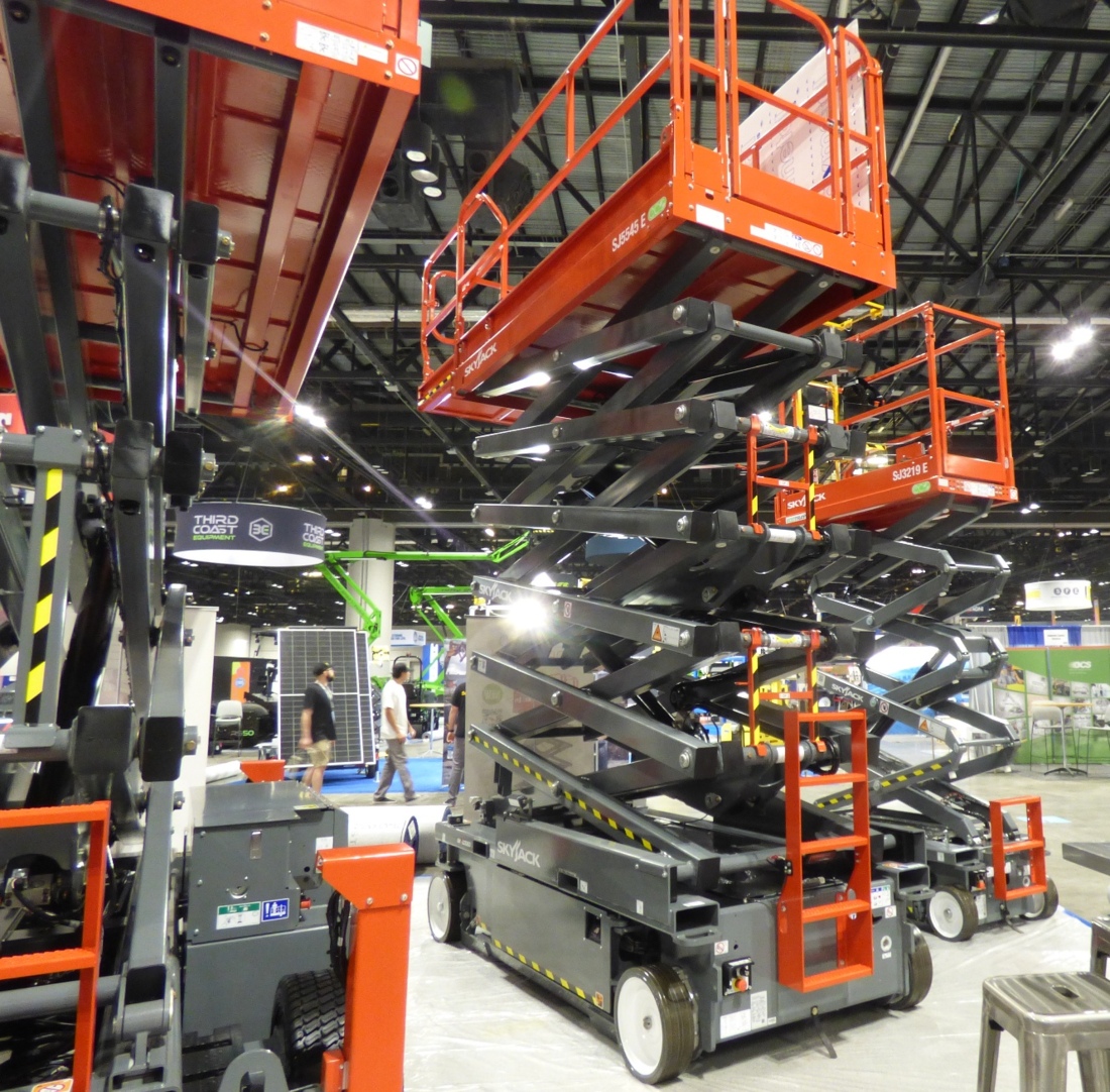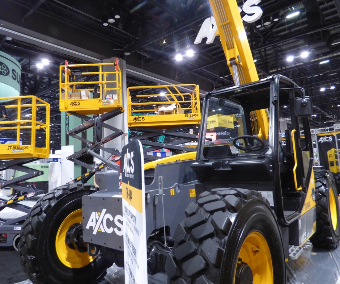 A tight squeeze on the AXCS stand with telehandlers and scissors